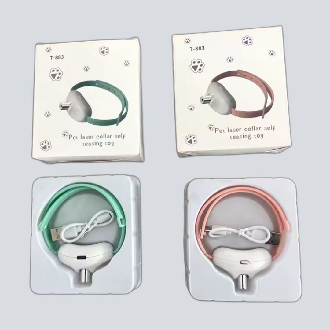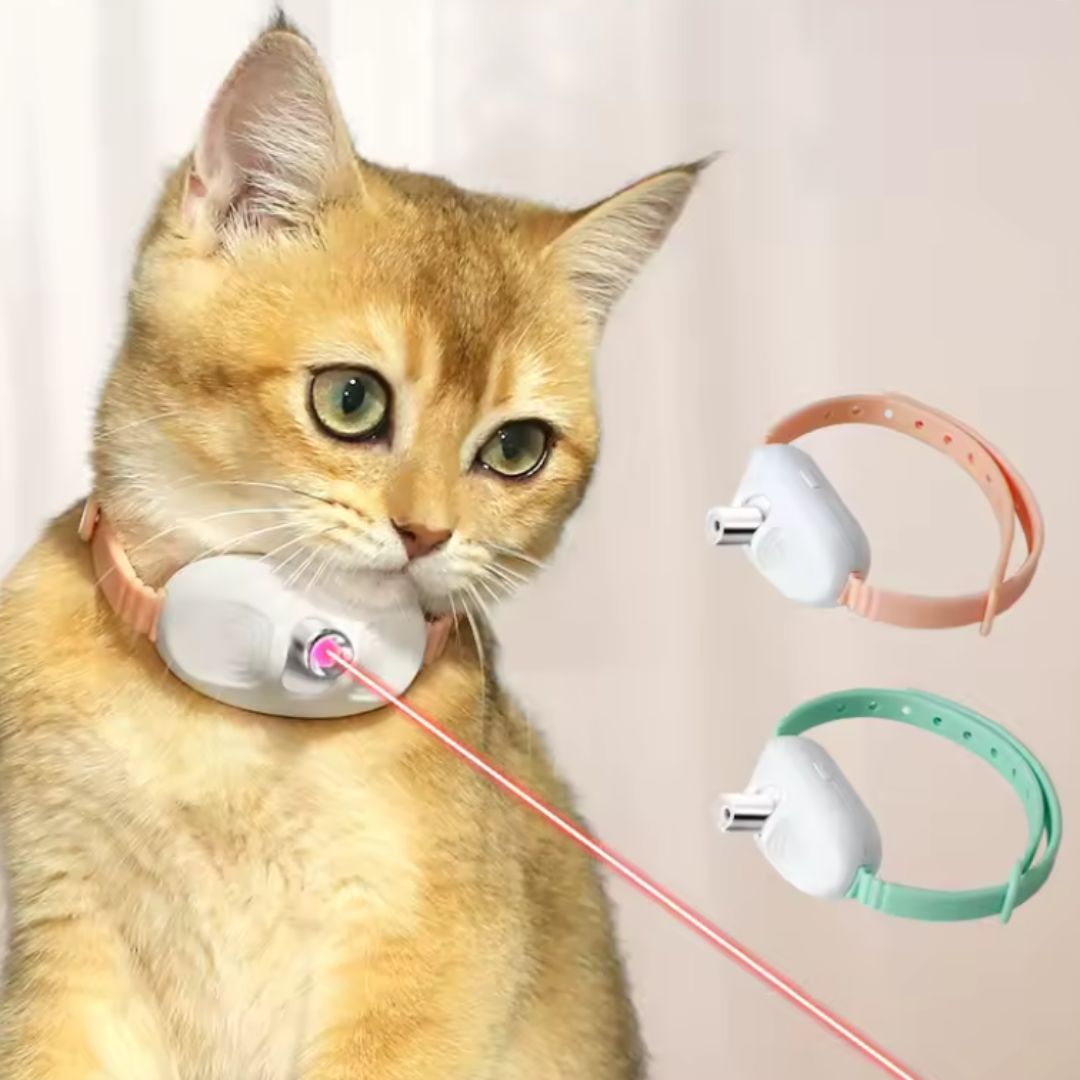 Collar de Goma con luz puntero láser perfecto para estimular a tu gato y mantenerlo entretenido.